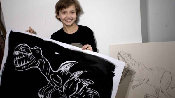 S Ardenem jsem se seznámila v létě roku 2016. Bylo mu 8 let a ukazoval mi nejen zvláštní abstraktní velkoformátové obrazy, ale také mnoho perokreseb a skici různých druhů dinosaurů, kterými byl v té době…