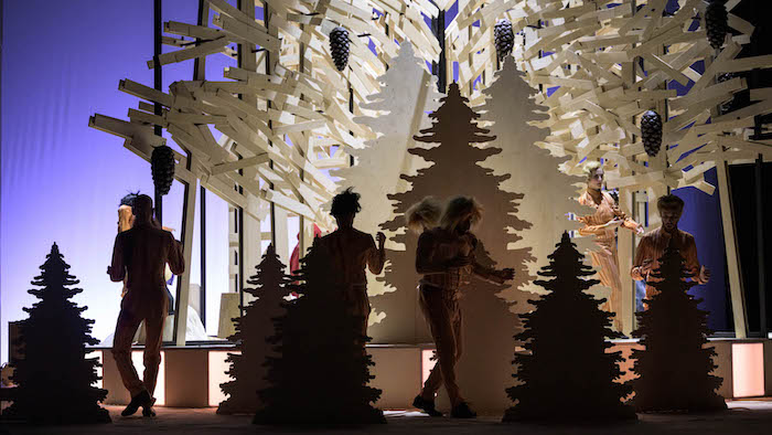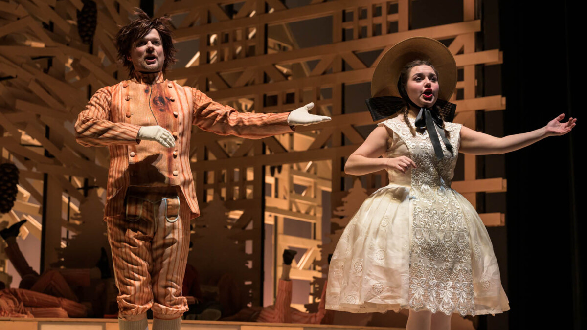 Das Bühnenbild der Inszenierung kreirte die Bühnenbildnerin Eva Jiříkovská, die darin ganz natürlich mit Holz arbeitete. Es entstand ein Bühnenbild, das das traditionelle Engelsgeläut mit dem Stern auf der Spitze darstellt. Auch dieses Symbol spielt in der Marionettengeschichte eine bedeutene Rolle. Der Autor des tschechischen Librettos ist Ondřej Hučín.