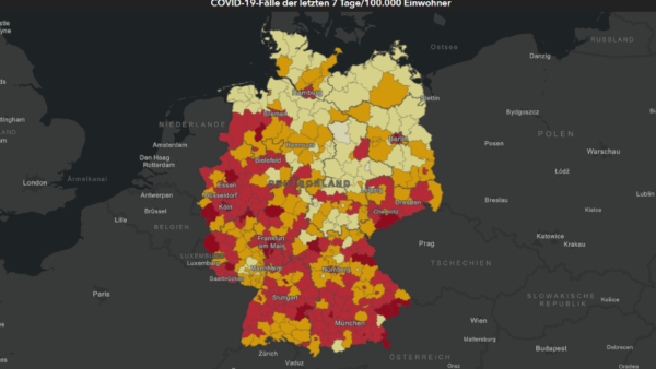 Mapy s počty koronavirové infekce trochu připomínají starý obraz bývalého rozděleného Německa. Na východě jsou téměř všechny oblasti světlé barvy, na západě má naopak mnoho okresů tmavší a hrozivější barvy. Bývalá hranice se dá lehce…