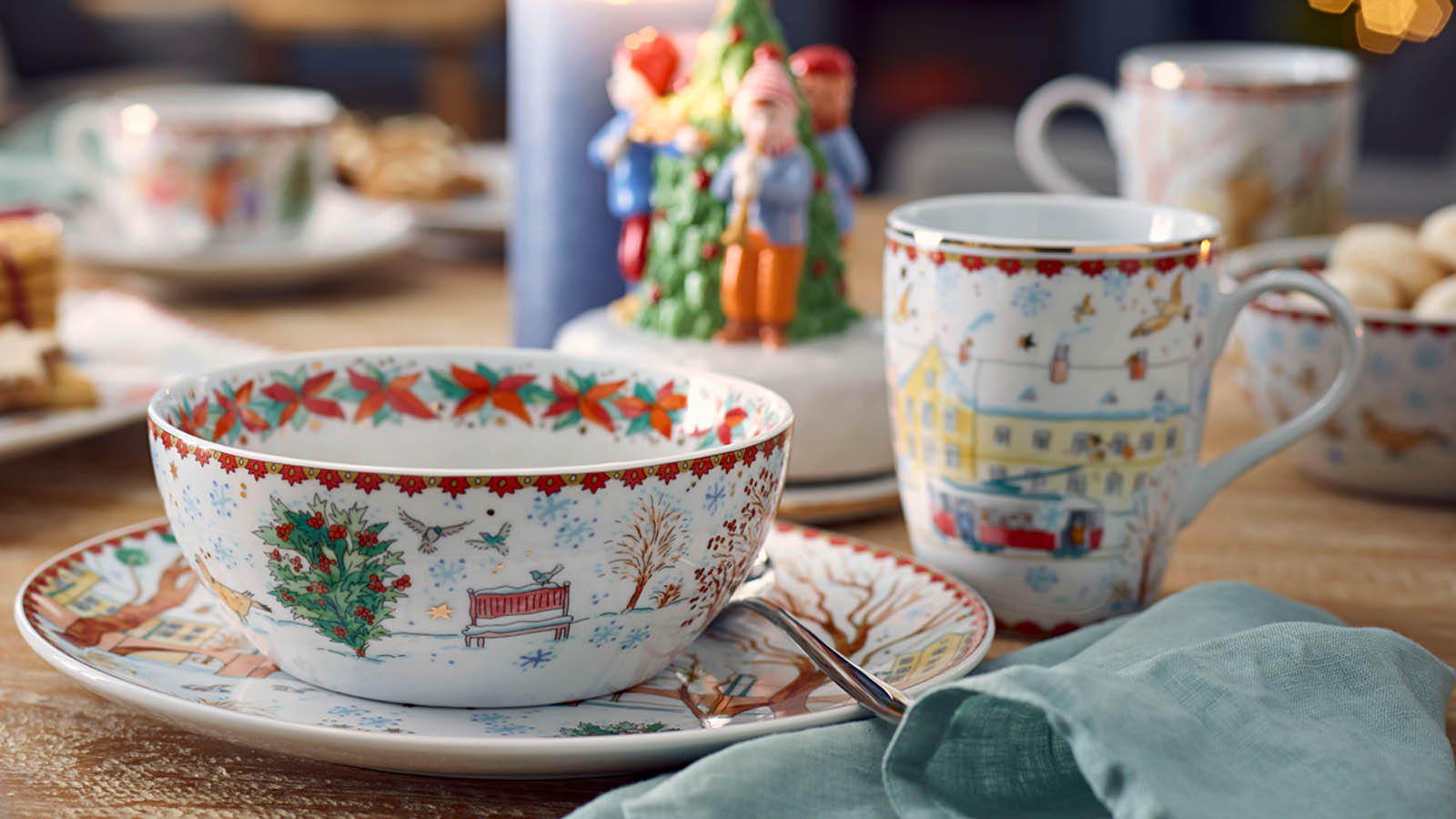 Vánoční porcelánové ozdoby ve tvaru koulí, šišek, holínek nebo kornoutů letos zachycují dlouho očekávaná setkávání přátel, doprovázená cinkáním zvonečků, hrou violoncella s pianem nebo žesťových nástrojů. Hudební a jiné zvukové motivy spojené s (před)vánočním časem najdeme nejen na vánočních porcelánových ozdobách, stojáncích na ubrousky i plechových krabičkách, ale především na rozmanitém stolním nádobí. Díky tomu můžeme pít svařené víno z hrnků, na kterých zpívají děti koledy, hrají na housle nebo trubku, či ochutnávat různé druhy cukroví z talířků, na nichž se lidé scházejí u bohatě zdobeného vánočního stromu na náměstí těsně před začátkem slavnostního adventního koncertu.