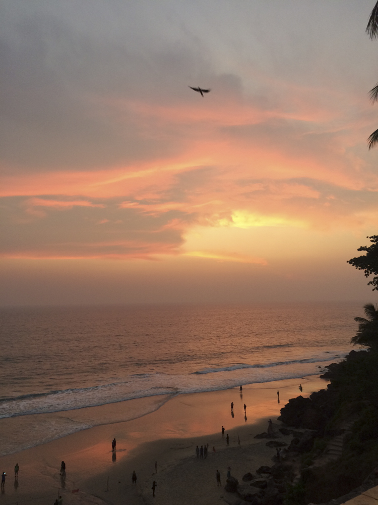 Místo v jižním cípu Kéraly je plné nadšených jogínů plnících si svůj sen v podobě certifikačních kurzů, vyniká nepředstavitelně magickými západy slunce, všudypřítomnými divokými psy a vůněmi vonných tyčinek. Bydlím v místnosti společně s dálnicemi mravenců, velkým pavoukem, ještěrkou a každé ráno a večer chodím na lekci jógy. Mezitím si užívám pohostinnosti místních restaurací a bister, kde dostanete za nízké ceny vysokou kvalitu — resp. lahůdky, které jsou připraveny z toho, co kolem vás právě roste, v nekonečně barevných kombinacích a nečekaných chutích. Vše se zde vaří na kokosovém oleji, takže i vzduch je jím hutně provoněný. Na řadu věcí si velmi rychle zvyknete a v Česku vám poté chybí. Zůstávají tedy alespoň v mé pocitové výbavě a se zavřenými víčky se k nim s úsměvem vracím. Jedna ze vzpomínek patří rannímu objetí Indií. Je zcela běžné, že Indové vstávají ještě před východem slunce. Mnoho činností tak zvládnou v brzkých ranních hodinách. Ať už jde o práci, vaření, cvičení. S budíkem na půl sedmou se vlastně cítím tak trochu provinile. V Praze je to velmi brzy, v Indii naopak pozdě. Vstávám tedy do „roztančeného“ dne, který mě vítá vůněmi jídla, sluncem a všudypřítomnou hudbou a zpěvem. Člověka to rovnou naladí na pozitivní vlnu, na které se pak můžete nést celý den. Tím, že se brzy vstává, se také docela brzy chodí spát. Má to svůj smysl, člověk následuje přirozené naprogramování přírodou a tělo si to užívá, začíná mít mnohem více energie a mysl dostává dávku dobrého pocitu z uspokojeného těla.