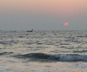 Varkalu hladí oceán, resp. Arabské moře, jehož vlny se na pobřeží burácivě lámou a otáčí nadšené mořemilce do kotrmelců. Indové většinou neumí plavat, takže se jen po kolena brodí pěnou z doznívajících vln. Ti odvážnější jdou po pás. Nikdy je ale neuvidíte v plavkách. Stejně tak to platí o zakrytí obnažených ramen a nohou. Cizinec by měl respektovat tento oděvní zvyk, i když v turistických oblastech lze lehce přimhouřit oko. Západy slunce jsou ve Varkale opulentní. Velká červená koule propadá bílo-šedými mraky do moře, které jí poskytuje zrcadlo, aby na hraně dne a noci mohlo ještě naposledy dramaticky zazářit. Tak jako slunce otevírá a zavírá den, tak se s ním i jogíni vítají a loučí. Až ve Varkale jsem pochopila, že jóga není o výkonu, není to sportovní trénink, je to životní moudrost. Vědomě dýchat, vědomě protahovat, vydržet, posouvat své limity v pozicích. Rovnoměrně posilovat své tělo i mysl. Koncentrovat se na činnost. Učit se být přítomný v daném okamžiku. Tady a teď, bez myšlenek na minulost, bez uvažování nad budoucností. Minulost neovlivním, budoucnost nakonec stejně dopadne jinak, než si naplánuji. Zůstat ve vědomé přítomnosti je má velká výzva. Kromě toho také „vděčnost“ a „pokora“. Hodnoty, které mi Indie připomněla a naservírovala v jejich plném významu. S rovnými zády a skloněnou hlavou tedy po měsíci rozmanitých zážitků nasedám na zpáteční letadlo, které má čtyři a půl hodiny zpoždění. Vím, že se s Indií nevidím naposledy, protože mě mistrně, jemně a přirozeně dokázala přiblížit ke ke svému vlastnímu já. Děkuji, na viděnou, namaste…